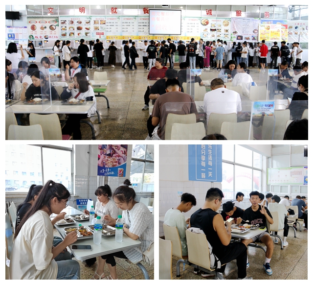 中午,學(xué)校為新生及家長準(zhǔn)備了美味的飯菜。坐在寬敞整潔的食堂,品嘗著可口的飯菜,體味著家的溫馨,新生及家長的臉上露出滿意的微笑。