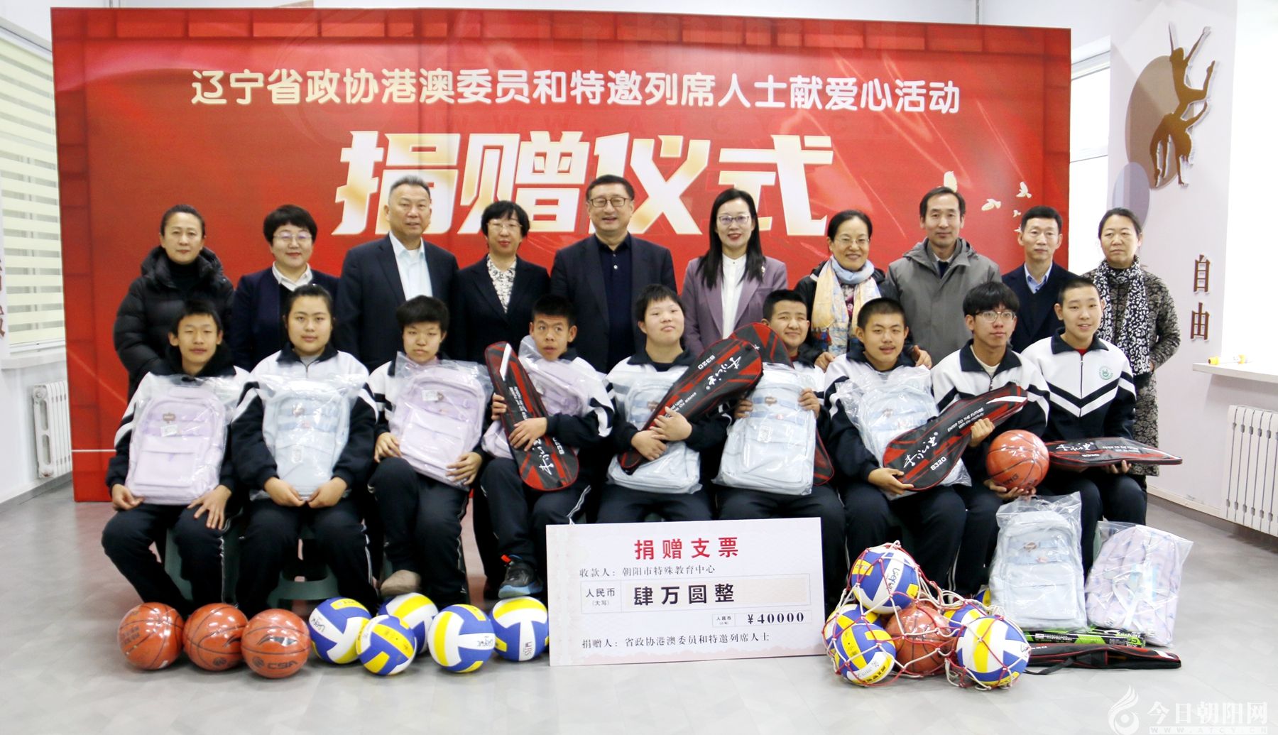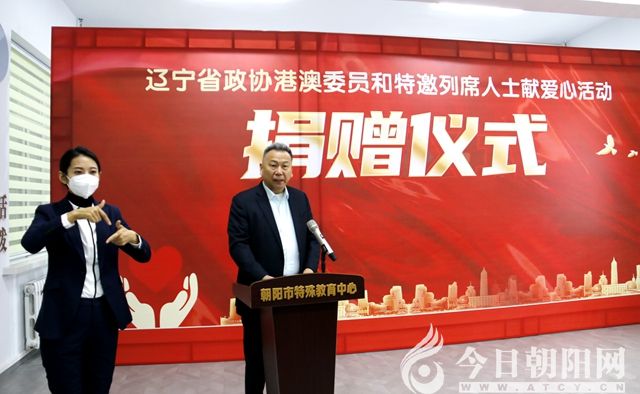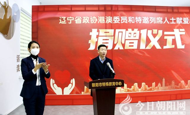凜冬雖寒,因愛(ài)生暖。12月14日,一場(chǎng)降雪不期而至。在這冰天雪地的冬日,遼寧省政協(xié)“港澳委員和特邀列席人士愛(ài)心助學(xué)活動(dòng)”捐贈(zèng)儀式在朝陽(yáng)市特殊教育中心舉行。本次活動(dòng)由遼寧省政協(xié)港澳臺(tái)僑(外事)委員會(huì)組織開(kāi)展,省政協(xié)港澳臺(tái)僑(外事)委員會(huì)主任韓玉起、副主任李桂馨,科勒迪(遼寧) 輕工制品有限公司董事長(zhǎng)鄧燦光,江蘇茅迪集團(tuán)子公司朝陽(yáng)縣合泰礦業(yè)有限公司經(jīng)理孫愛(ài)軍,省政協(xié)港澳臺(tái)僑(外事)委員會(huì)辦公室主任張國(guó)良,朝陽(yáng)市委常委、副市長(zhǎng)琚慧敏,朝陽(yáng)市教育局黨組書(shū)記、局長(zhǎng)巨海燕參加活動(dòng)。朝陽(yáng)市政協(xié)副主席康敏主持捐贈(zèng)儀式。