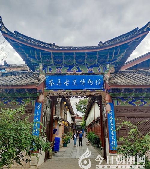 我們順著小路一路體味民俗民居的民族特色。前方茶馬古道博物館牌匾,藍(lán)底白字。有人說,要了解一個地方的歷史就要去其博物館。我們興沖沖地一同進(jìn)去尋找,結(jié)果走近一看,卻是關(guān)閉狀態(tài)。有點(diǎn)小遺憾。