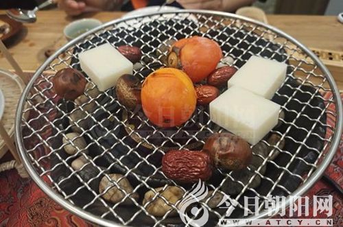 茶壺是石質(zhì)的,沁了時(shí)光的釉色,顯得古樸而實(shí)在。這里也有果酒,但我們更偏向喝茶?;馉t上紅棗子被火熏烤得香氣彌漫在空氣中,栗子爆開(kāi)了發(fā)出輕微的響動(dòng),小柿子其實(shí)也可以涼著吃,不過(guò)經(jīng)火烤一下就有了冬天的感覺(jué)。我們喝著茶,有一句沒(méi)一句地閑聊著,任時(shí)光就這樣悄悄地走過(guò)。