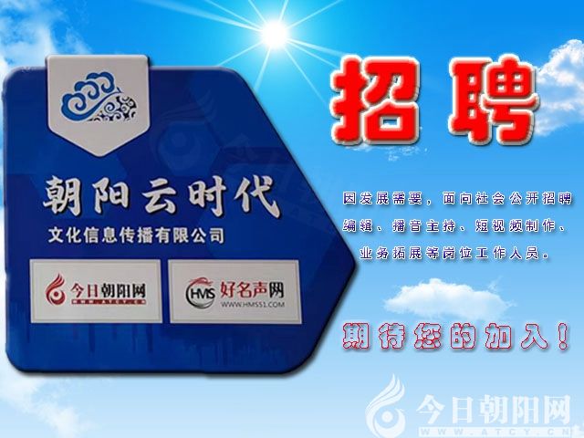 今日朝陽網(wǎng)、好名聲網(wǎng)隸屬于朝陽云時代文化信息傳播有限公司,因發(fā)展需要,特面向社會公開招聘編輯、播音主持、短視頻制作、業(yè)務拓展等崗位工作人員。從6月15日開始報名。