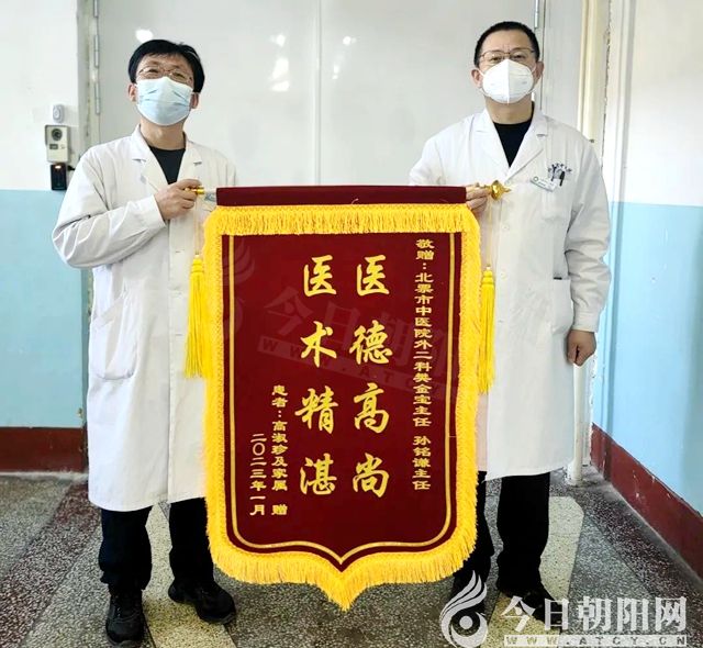 近日,一面印有“醫(yī)德高尚 醫(yī)術(shù)精湛”字樣的大紅錦旗送到了遼寧省北票市中心醫(yī)院中醫(yī)院區(qū)骨傷二科,患者家屬難掩感激之情,緊緊握住醫(yī)護(hù)人員的手再三表示感謝。鮮艷的錦旗,質(zhì)樸的話語,讓在場的醫(yī)護(hù)人員深受感動,再次堅定了為患者服務(wù)的信念與決心。