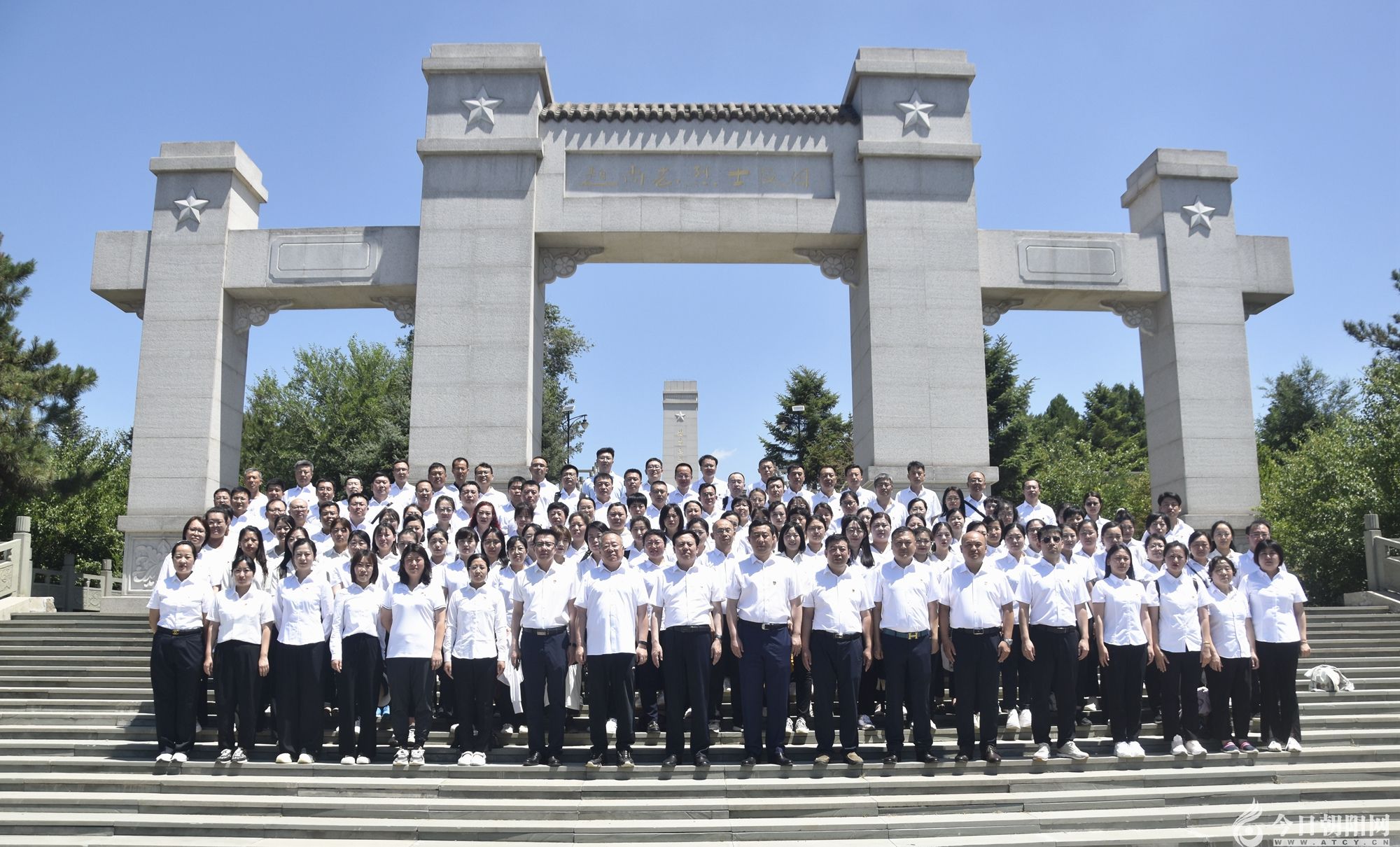 隨后,一行人又乘車來(lái)到趙尚志烈士陵園。在紀(jì)念堂內(nèi),黨委書記張海林、副書記劉經(jīng)緯代表全體黨員,為東北抗日聯(lián)軍的創(chuàng)建人和領(lǐng)導(dǎo)人、威震中外的抗日民族將領(lǐng)趙尚志將軍塑像敬獻(xiàn)花籃,深切緬懷這位深受人民愛(ài)戴和敬仰的民族英雄。參觀過(guò)程中,通過(guò)觀看展板及聆聽講解員對(duì)趙尚志將軍生平事跡的介紹,大家對(duì)民族英雄有了更深的了解,為烈士寧死不屈的革命精神所感動(dòng)。