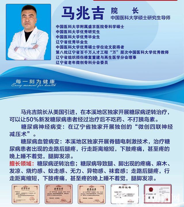朝陽四院糖尿病足保肢治療中心,是朝陽地區(qū)首家專門從事糖尿病足保肢治療的綜合性診療科室,保肢技術處于國內(nèi)先列。保肢治療中心首席專家馬兆吉經(jīng)長期摸索、臨床實踐、技術創(chuàng)新與改進,創(chuàng)立了“糖尿病足中西醫(yī)結(jié)合保肢療法”。該治療體系無論是在診療模式還是防治效果上均取得了重大突破。馬兆吉所創(chuàng)立的《糖尿病足保肢治療的創(chuàng)新理論與關鍵技術》,獲得遼寧省科技進步獎,是遼寧省內(nèi)糖尿病足保肢治療唯一獲得省級獎勵的項目,受益患者遍布全國各地。