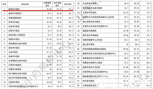 本次質(zhì)控檢查從中藥藥事組織機(jī)構(gòu)和質(zhì)控管理體系、中藥藥事管理、中藥處方和調(diào)劑質(zhì)量管理、中藥煎藥室規(guī)范管理、中藥處方點(diǎn)評及合理應(yīng)用五個(gè)方面,對中藥管理進(jìn)行全面督導(dǎo)檢查,并抽取被檢單位25個(gè)品種中藥飲片樣本,進(jìn)行中藥飲片質(zhì)量評估計(jì)入檢查總成績。檢查綜合分為兩部分,即中藥藥事管理質(zhì)量和中藥飲片質(zhì)量,總分計(jì)100分。朝陽市中醫(yī)院以總分87.60分位列本次檢查綜合評分第一名!