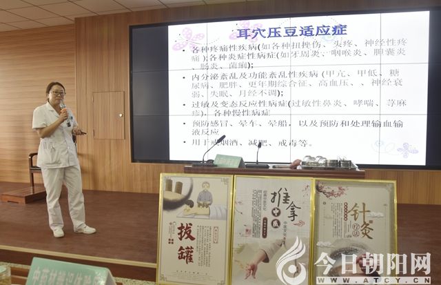 下午3時20分,活動正式開始。治未病科王月從“中醫(yī)健康常識、近視預(yù)防保健、預(yù)防脊柱側(cè)彎、辟毒香囊介紹”四個方面,用通俗易懂的語言為學(xué)生講解了《中醫(yī)健康常識與預(yù)防保健》。中藥局卞淑艷以《神奇的中草藥》為題,對“中藥的基本知識、道地中藥材、中藥材的辨識、藥食同源、臘葉標(biāo)本制作”作了細(xì)致講解,讓學(xué)生對中藥有了初步的了解和新的認(rèn)識。內(nèi)一科護(hù)士長張曉春介紹了中醫(yī)特色療法——耳穴埋豆療法,并現(xiàn)場邀請學(xué)生親自體驗,切身感受中醫(yī)的神奇。腫瘤科護(hù)士長賈明霞等5名護(hù)士帶來了中醫(yī)養(yǎng)生健身氣功——八段錦的表演。八段錦有強(qiáng)身健體、通經(jīng)活絡(luò)、舒解身心的良好作用,讓學(xué)生感受養(yǎng)生功法的魅力。
