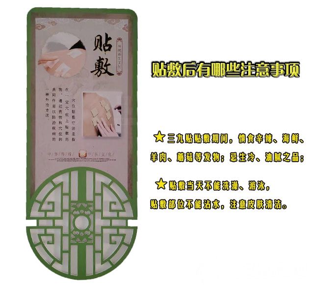 “伏九貼敷療法”是根據(jù)中醫(yī)“天人相應(yīng)”理論,順應(yīng)四時氣候特色的一種“內(nèi)病外治”的傳統(tǒng)療法。市中醫(yī)院“三九貼”精選道地藥材,采用遼寧中醫(yī)藥大學(xué)附屬第一醫(yī)院的先進制作工藝,精心配制膏藥,按穴位進行敷貼,讓溫陽祛寒、逐痰利氣的藥物由皮膚滲入穴位經(jīng)絡(luò),經(jīng)由經(jīng)絡(luò)氣血直達五臟六腑,驅(qū)除伏藏于體內(nèi)的寒氣,調(diào)整人體陰陽平衡,增強體質(zhì),從而達到扶正祛邪的效果。