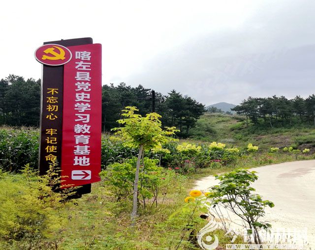 細雨如霧,絲絲縷縷,籠罩著九月的桃(花池)四(合當(dāng))公路。山河潑綠,村莊隱現(xiàn),泥土芬芳撲進車窗,灑滿我和妻子的襟懷。開車從大連回喀左縣山嘴子鎮(zhèn)省親,想起網(wǎng)紅地——馬家溝,于是過家門而不入,沿鎮(zhèn)東公交車站小橋邊的黨旗雕塑指示牌左轉(zhuǎn),直奔“喀左縣黨史學(xué)習(xí)教育基地”,過村莊,穿鐵路橋,進臥虎溝村,格桑花、向日葵、萬壽菊夾道綻放,花香醉得蜂蝶披雨忙碌,堪比忙秋的父老鄉(xiāng)親。