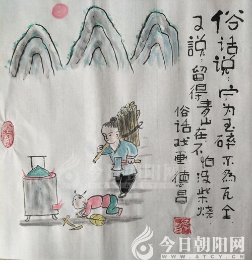 范德昌,今日朝陽網(wǎng)文化信使,1955年生于山東濰坊,自幼酷愛書畫?,F(xiàn)為山東省美術(shù)家協(xié)會(huì)會(huì)員,山東省漫畫協(xié)會(huì)理事兼副秘書長,漫畫人生指導(dǎo)老師,《婦女雜志》《女人觀天下》等報(bào)刊簽約畫家。30多年來,在全國160余家報(bào)刊發(fā)表作品6000余件,260余次獲獎(jiǎng)。1994年至今,已岀版12本個(gè)人畫集。40多件作品被日本、韓國、新加坡和中國臺(tái)灣、香港的企業(yè)家及朋友收藏,被多家新聞媒體譽(yù)為扎根基層的民俗畫家,被評(píng)為“山東省百名讀書人物”和提名為“百名文化名人”。風(fēng)格獨(dú)特、個(gè)性鮮明的水墨小品,貼近生活,寓教于樂,深受大眾喜愛。事跡和畫作被收編入《中國人才薈萃》、《二十一世紀(jì)人才庫》等8本辭書和傳記,18幅孝文化作品被收編于《銀齡書畫冊(cè)》。
