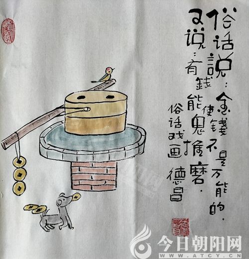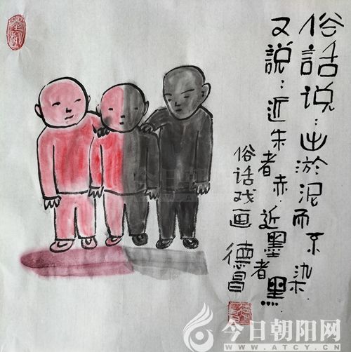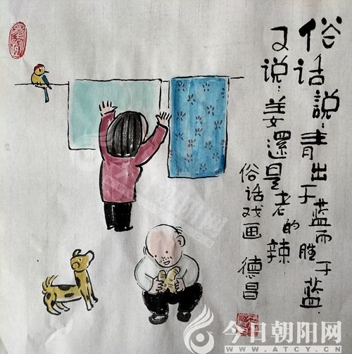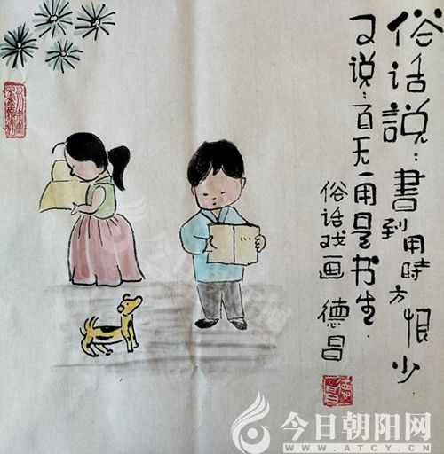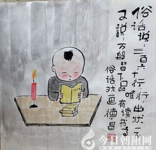 范德昌,今日朝陽網(wǎng)文化信使,1955年生于山東濰坊,自幼酷愛書畫?,F(xiàn)為山東省美術家協(xié)會會員,山東省漫畫協(xié)會理事兼副秘書長,漫畫人生指導老師,《婦女雜志》《女人觀天下》等報刊簽約畫家。30多年來,在全國160余家報刊發(fā)表作品6000余件,260余次獲獎。1994年至今,已岀版12本個人畫集。40多件作品被日本、韓國、新加坡和中國臺灣、香港的企業(yè)家及朋友收藏,被多家新聞媒體譽為扎根基層的民俗畫家,被評為“山東省百名讀書人物”和提名為“百名文化名人”。風格獨特、個性鮮明的水墨小品,貼近生活,寓教于樂,深受大眾喜愛。事跡和畫作被收編入《中國人才薈萃》、《二十一世紀人才庫》等8本辭書和傳記,18幅孝文化作品被收編于《銀齡書畫冊》。