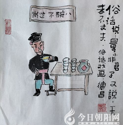 范德昌,今日朝陽網(wǎng)文化信使,1955年生于山東濰坊,自幼酷愛書畫?,F(xiàn)為山東省美術(shù)家協(xié)會(huì)會(huì)員,山東省漫畫協(xié)會(huì)理事兼副秘書長,漫畫人生指導(dǎo)老師,《婦女雜志》《女人觀天下》等報(bào)刊簽約畫家。30多年來,在全國160余家報(bào)刊發(fā)表作品6000余件,260余次獲獎(jiǎng)。1994年至今,已岀版12本個(gè)人畫集。40多件作品被日本、韓國、新加坡和中國臺(tái)灣、香港的企業(yè)家及朋友收藏,被多家新聞媒體譽(yù)為扎根基層的民俗畫家,被評(píng)為“山東省百名讀書人物”和提名為“百名文化名人”。風(fēng)格獨(dú)特、個(gè)性鮮明的水墨小品,貼近生活,寓教于樂,深受大眾喜愛。事跡和畫作被收編入《中國人才薈萃》、《二十一世紀(jì)人才庫》等8本辭書和傳記,18幅孝文化作品被收編于《銀齡書畫冊(cè)》。