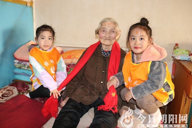 活動間隙,天真俏皮的孩子們紛紛簇?fù)淼嚼先藨牙?,給老人們剝香蕉、桔子,用稚嫩的小手喂給老人吃,老人們開心地把孩子抱在懷里,場面溫馨感人。中華園社區(qū)黨委書記陳艷麗和陳玉娥帶著孩子們,登門看望了102歲高齡的劉桂芝老人,給老人送去了掛面、水果等慰問品,看到老人身板較為硬朗大家十分高興,仔細(xì)詢問了老人的生活和身體健康情況,為老人送上了節(jié)日祝福。