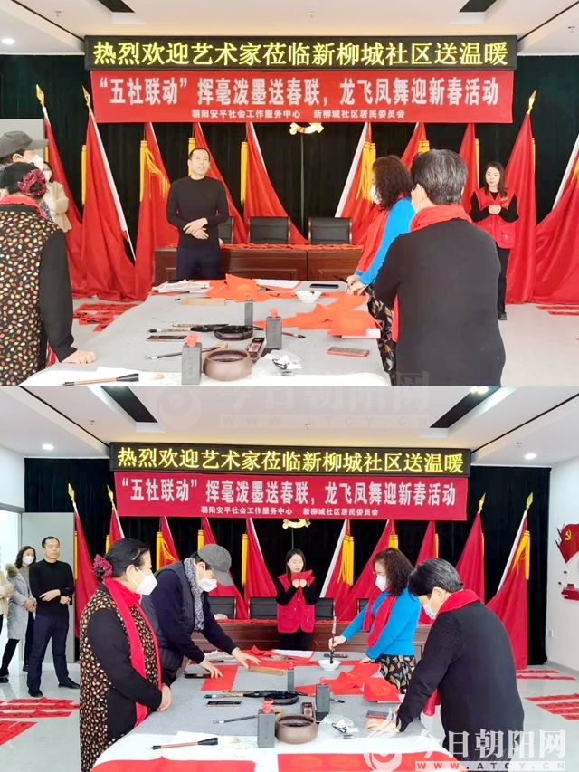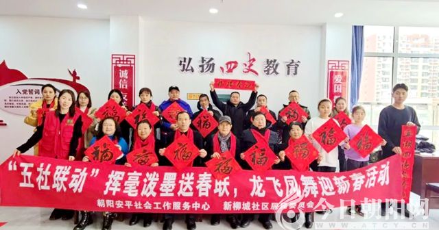 在新春佳節(jié)來(lái)臨之際,為了讓社區(qū)孤寡高齡困難老人、困難家庭感受到新年的溫暖,1月17日上午,遼寧朝陽(yáng)安平社會(huì)工作服務(wù)中心聯(lián)合朝陽(yáng)縣柳城街道新柳城社區(qū)居民委員會(huì)、中國(guó)書(shū)法藝術(shù)名家何壽彭老師和孟子書(shū)院首席書(shū)法老師、書(shū)法愛(ài)好志愿者們開(kāi)展“五社聯(lián)動(dòng)”老年服務(wù)活動(dòng),在新柳城社區(qū)二樓會(huì)議室揮毫潑墨,為孤寡高齡困難老人、困難家庭寫(xiě)春聯(lián)、送“福”字,暖心的舉動(dòng)得到了社區(qū)居民的廣泛好評(píng)。