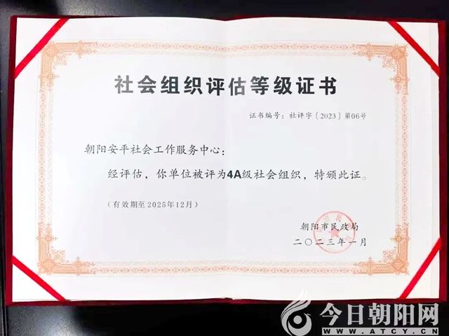 祝賀!朝陽安平社會工作服務(wù)中心獲評4A級社會組織
