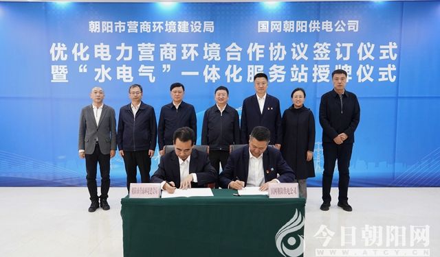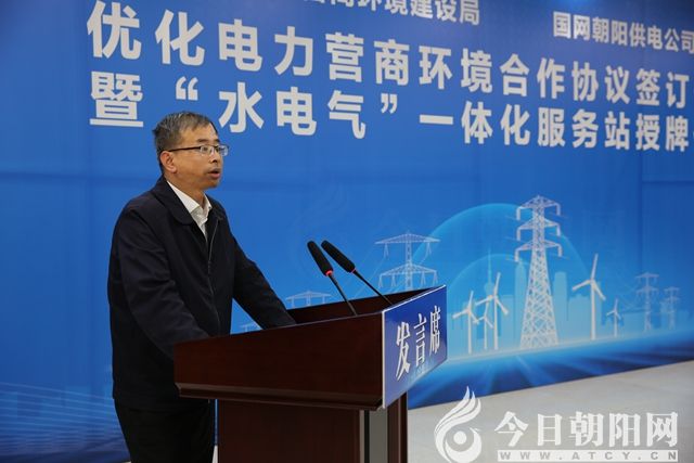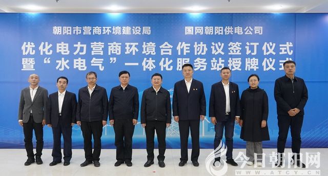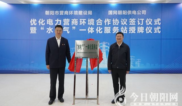 為深入落實習(xí)近平總書記關(guān)于優(yōu)化營商環(huán)境的重要指示精神,5月6日,國網(wǎng)朝陽供電公司舉行了優(yōu)化電力營商環(huán)境合作協(xié)議簽訂儀式暨水電氣一體化服務(wù)站授牌儀式。朝陽市副市長樊功成為水電氣一體化服務(wù)站授牌。朝陽市政府副秘書長王國疆,市營商環(huán)境建設(shè)局局長張愛軍、副局長王昆侖,國網(wǎng)朝陽供電公司總經(jīng)理王榮茂、副總經(jīng)理晏云橋參加授牌儀式。