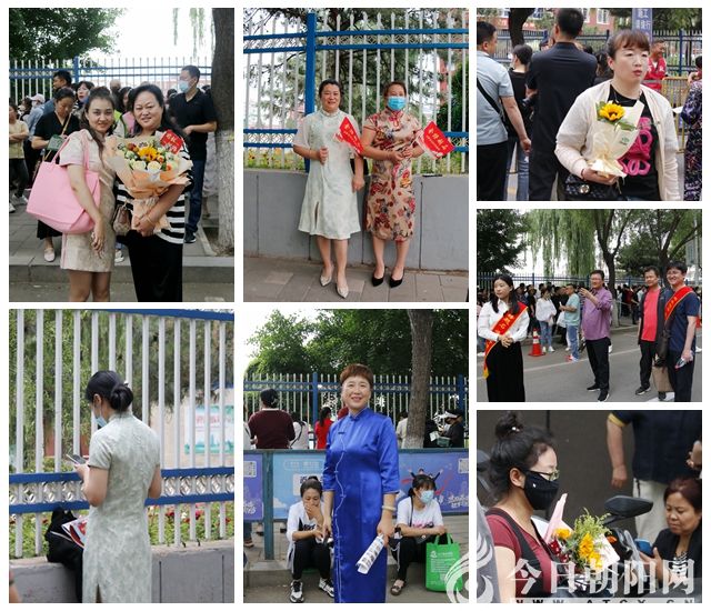 陪考的家長們用各自的方式為考生加油助威。有的身穿旗袍,有的手捧向日葵花……目光灼灼,滿心期許。