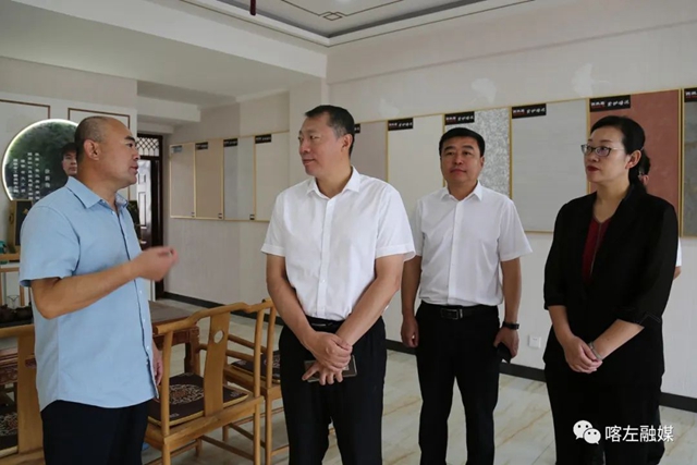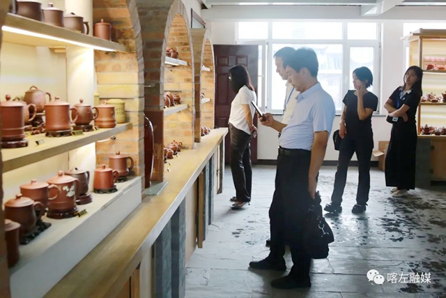 省文化和旅游廳黨組成員、副廳長趙輝(左二),市委常委、副市長琚慧敏(右一),縣長張秀偉(右二)在玉龍紫砂考察