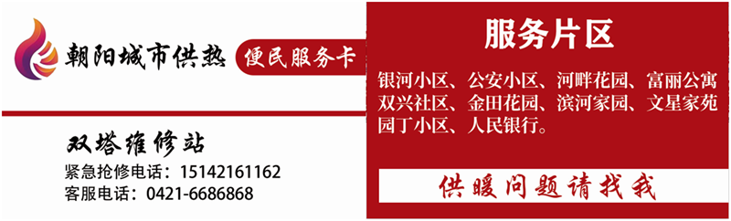 今冬供暖季即將到來,為暢通群眾訴求渠道,及時解決群眾在供暖過程中遇到的問題,在朝陽市供暖工作服務(wù)中心的統(tǒng)籌安排下,朝陽城市供熱有限公司印發(fā)了“供暖便民服務(wù)卡”,如市民朋友遇到供暖問題,可及時撥打所在片區(qū)的維修電話,會有專人上門維修。