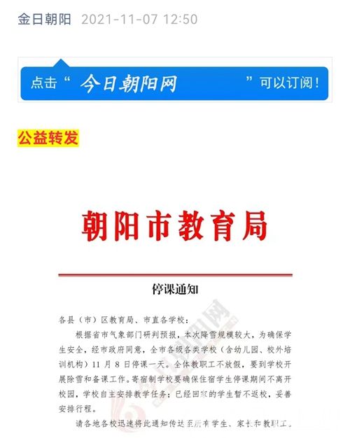 剛剛,本網(wǎng)編輯部接到朝陽市一網(wǎng)友電話,說在本網(wǎng)所屬公眾號(hào)——“金日朝陽”上看到“11月8日停課一天的《朝陽市教育局停課通知》”,并發(fā)來了截圖,咨詢是否屬實(shí)?