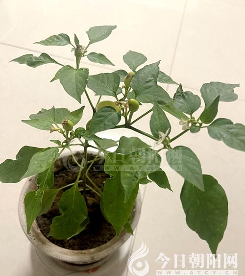 帶著對神奇五彩椒的喜愛之情,我特意找到小區(qū)門衛(wèi)管理五彩椒的工作人員,要了一棵,捧著回到家,急忙栽到了花盆里,每天都像觀察孩子一樣觀察它的成長。