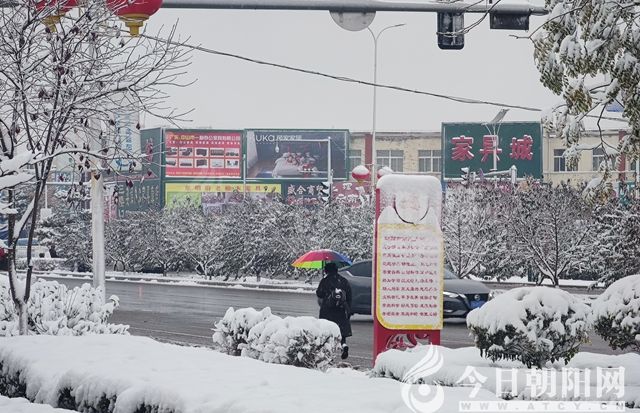 11月6日,遼寧朝陽迎來了入冬前的第一場雪。一早醒來,天地間披上了一層銀裝,小城仿佛也安靜了下來,一條條街道如同一條條“銀蛇”,簌簌的雪聲,帶來一份靜謐,宛若初冬優(yōu)美的前奏。