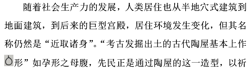 因?yàn)榉课輰?duì)人類的生養(yǎng)庇護(hù)之功,使人們自然聯(lián)想到宇宙天地只不過是一所更大的房子而已。