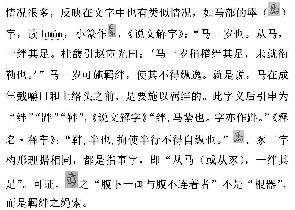 其實(shí),后世學(xué)者否定許慎釋“豖”之關(guān)鍵有二:一、就字形言,在于豕腹下一畫與豕身不連著者,是豕之“去勢(shì)”,即閹掉之“根器”(雄性生殖器),還是羈絆之索繩。二、豖字的讀音與釋義。聞一多先生認(rèn)為:“豖之本義,當(dāng)求之于經(jīng)傳之椓及斀劅等字。……案椓劅斀并與豖音同義通,豖本豕去陰之稱,通之于人,故男子宮刑亦謂之豖。詩(shī)書作椓,用借字。鄭作劅,許作斀者,并后起形聲字,許君訓(xùn)斀為去陰刑,故無可議,特不知豖乃其最初文耳。”⑨也就是說,聞一多先生以與豖字“音同義通”的椓劅斀字以證“豖本豕去陰之稱”。