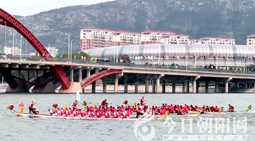 凌河兩岸人潮涌,水上齊齊槳拍流。