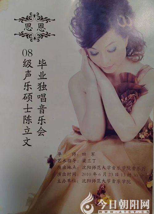 2010年6月23日,朝陽師專聲樂教師陳立文在沈陽師范大學(xué)讀聲樂碩士研究生舉辦畢業(yè)獨(dú)唱音樂會(huì)。