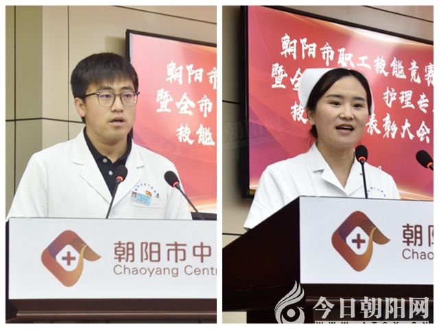 張帥國(左)、程文雅發(fā)言朝陽市中心醫(yī)院張帥國、程文雅代表獲獎選手發(fā)言,感謝主、承、協(xié)辦單位為選手們提供了一個展現(xiàn)自我、切磋技藝、共同進(jìn)步的平臺,表示會嚴(yán)謹(jǐn)對待醫(yī)療護(hù)理工作中的每一個細(xì)節(jié),鞏固并完善醫(yī)療護(hù)理知識與技能,為朝陽衛(wèi)生健康事業(yè)發(fā)展貢獻(xiàn)力量。