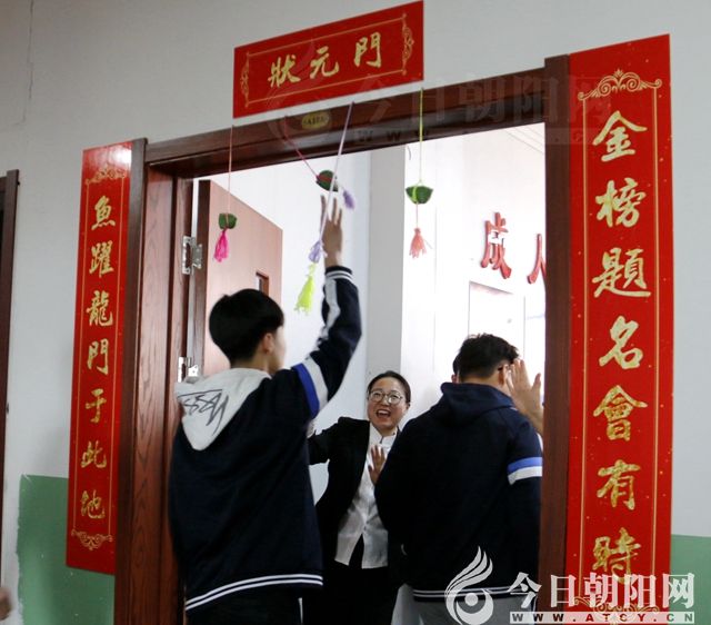 活動現(xiàn)場,走廊鋪上了紅地毯,映襯著“狀元門”的莊嚴與神圣。在學(xué)弟學(xué)妹們的熱烈掌聲中,高考學(xué)子以班級為單位,拉著條幅興高采烈地穿過“狀元門”,入場時,學(xué)子們歡快地跳起來頭頂懸于上方的“粽子”,寓意著高考必“中”。校長張玉霞及部分教師夾道歡迎,場面無比溫馨。這一刻,不僅是對未來的期許,更是對青春的禮贊。