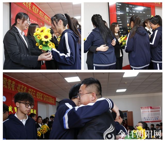 最為感人的一幕是教師領(lǐng)誓環(huán)節(jié),師生們鄭重宣誓,鏗鏘誓言在多功能演播廳內(nèi)回蕩,每一字每一句都顯得格外堅定而有力。隨后,老師向同學(xué)們贈送了向日葵花和封面上印有“前程似錦”“金榜題名”“未來可期”等祝福語的精美日記本。深情地擁抱和真誠地祝福,讓這份情感更加深厚。
