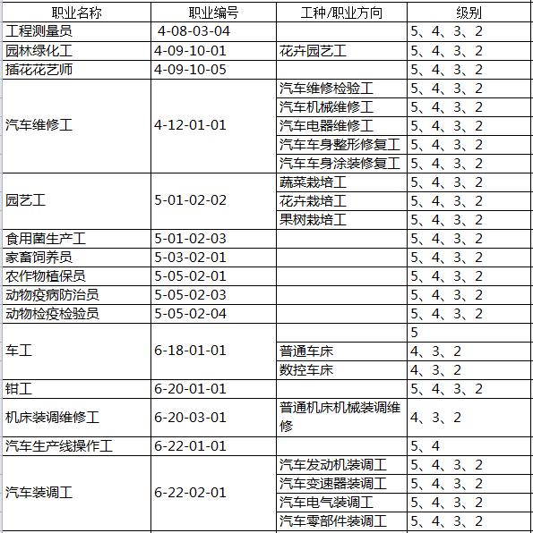 一、職業(yè)技能等級認定職業(yè)(工種)目錄及報名時間