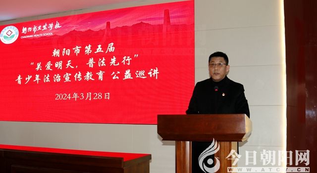 3月28日下午,遼寧省朝陽市衛(wèi)生學校組織全體師生參加了由朝陽市關(guān)工委、市政法系統(tǒng)關(guān)工委、教育系統(tǒng)關(guān)工委聯(lián)合開展的朝陽市第五屆“關(guān)愛明天,普法先行”青少年法治宣傳教育公益巡講活動。市關(guān)工委常務(wù)副主任、朝陽市第五屆“關(guān)愛明天,普法先行”青少年法治宣傳教育領(lǐng)導小組組長房玉成,市委政法委分管日常工作副書記、市政法系統(tǒng)關(guān)工委主任李偉,市關(guān)工委副主任任紹毅,市教育局二級調(diào)研員、關(guān)工委副主任趙存忠,市政法系統(tǒng)關(guān)工委常務(wù)副主任孟慶華,市教育局四級調(diào)研員劉維濤,市教育局關(guān)工委常務(wù)副主任惠鳳利,以及市公安局等部門的有關(guān)人員出席。活動由市衛(wèi)生學校校長劉立璽主持。