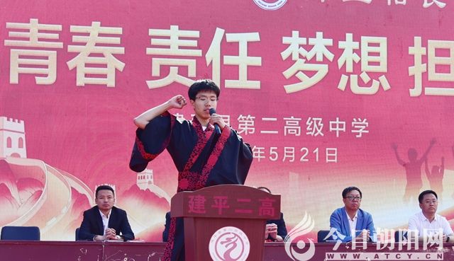 伴隨著雄壯的國歌聲,建平縣第二高級(jí)中學(xué)成人禮活動(dòng)正式拉開序幕。