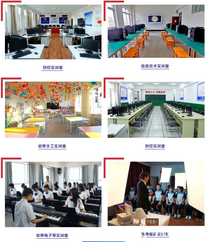 學?,F(xiàn)有100多個與各專業(yè)相配套的實訓(驗)室。其中電子商務(wù)、計算機應(yīng)用專業(yè)實訓基地是中央財政支持的國家級“職業(yè)教育實訓基地”,幼兒保育、計算機平面設(shè)計等六個專業(yè)實訓基地是“遼寧省職業(yè)教育創(chuàng)新型實訓基地”。幼兒保育、電子商務(wù)、計算機應(yīng)用三個專業(yè)是“遼寧省優(yōu)質(zhì)專業(yè)建設(shè)”項目。