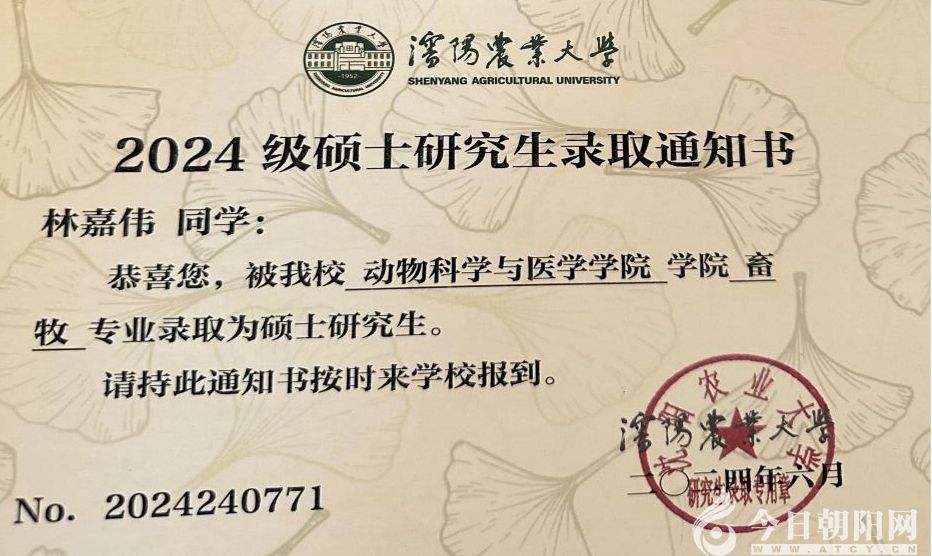 “我考上了,我真的考上碩士研究生了!”今年暑假,遼寧省朝陽工程技術(shù)學(xué)校畜牧獸醫(yī)專業(yè)2020屆畢業(yè)生林嘉偉收到了沈陽農(nóng)業(yè)大學(xué)的碩士研究生錄取通知書,他第一時間打電話將這個好消息告訴了自己的班主任楊曉靜老師?;叵霃囊幻新毶宦废蛏峡忌涎芯可慕?jīng)歷,林嘉偉感慨萬千。