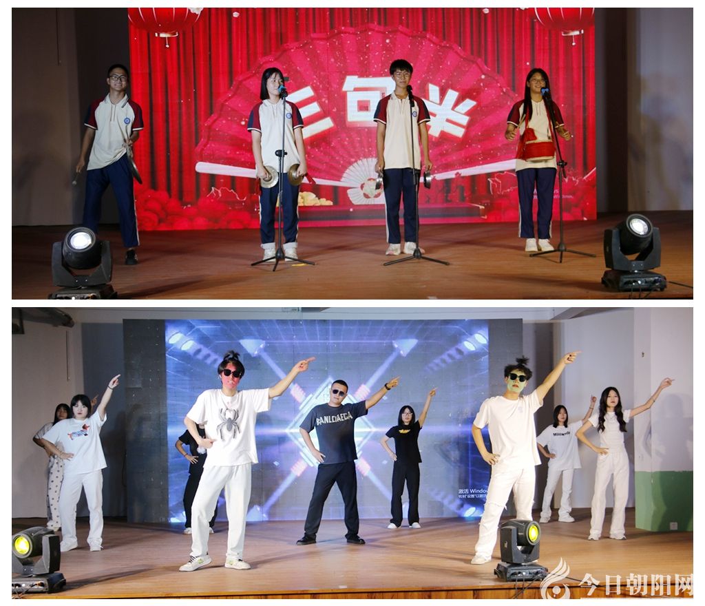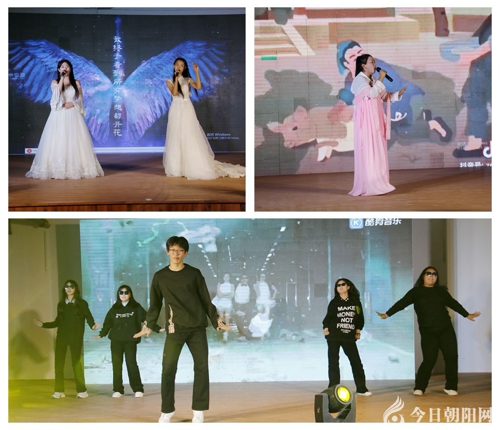 在這個(gè)特殊的日子里,教師們也用他們的才藝和熱情回應(yīng)著學(xué)生們。校領(lǐng)導(dǎo)班子帶來的大合唱《眾人劃槳開大船》《祖國不會忘記》展現(xiàn)了學(xué)校骨干力量的凝聚力;學(xué)生科攜全體班主任將詩朗誦與舞蹈完美結(jié)合,展現(xiàn)了教師們的風(fēng)采;招生辦的老師們帶來了一曲動(dòng)聽的歌曲串燒,燃爆全場;武躍輝老師演唱的評劇唱段《鳳求凰》,精湛的演技和深情的演唱贏得了全場師生的熱烈掌聲;教務(wù)科全體老師則用一支現(xiàn)代舞《相親相愛》表達(dá)了對同學(xué)們的深深愛意和殷切期望;執(zhí)行董事王孝久的詩朗誦《我是朝陽人》,字字句句都是對家鄉(xiāng)的深情厚誼和家國情懷,將全場師生的心緊緊連在一起。