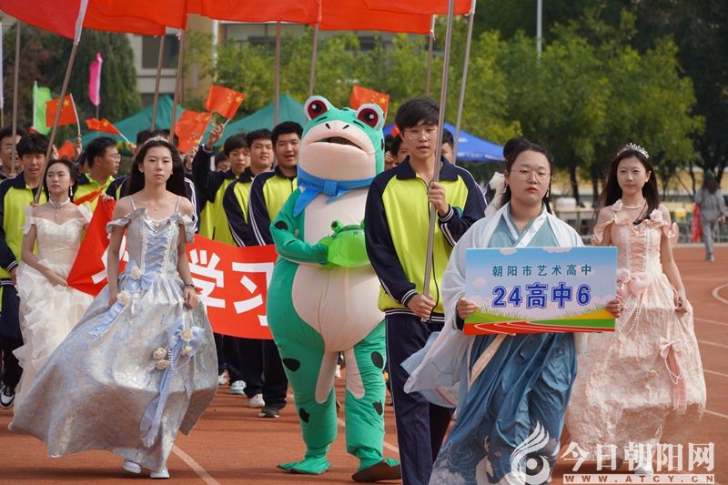 校旗方隊(duì)緊跟其后,校旗在風(fēng)中獵獵作響,象征著朝陽市財(cái)經(jīng)學(xué)校、朝陽市藝術(shù)高中的獨(dú)特風(fēng)采與團(tuán)結(jié)奮進(jìn)的精神。隨后而來的彩球方隊(duì)和紅旗方隊(duì)洋溢著青春的活力。