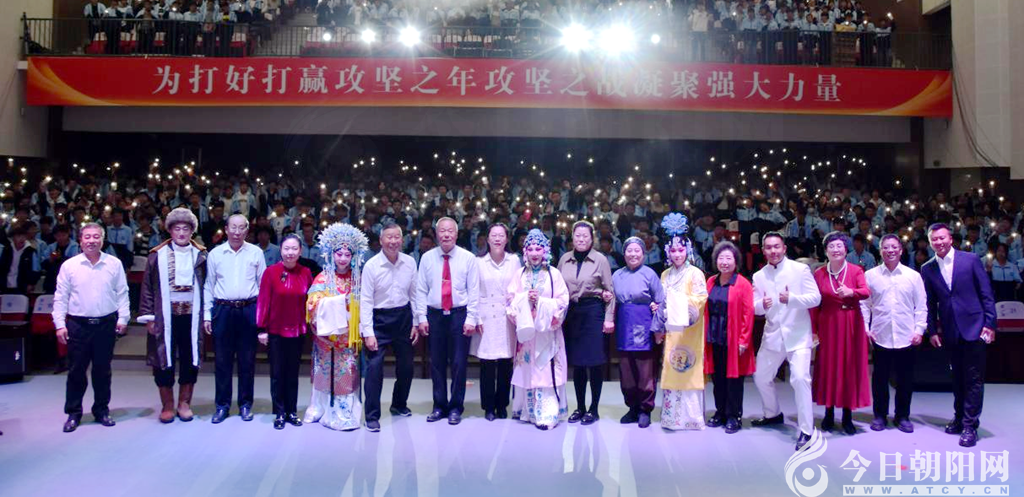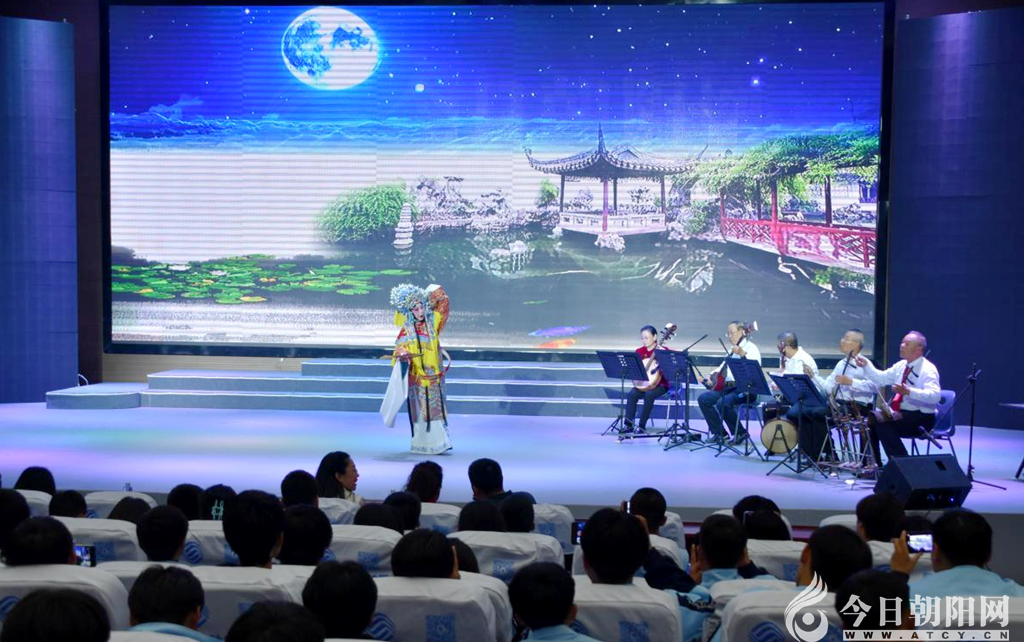 朝陽(yáng)市戲劇家協(xié)會(huì)主席李冬梅與京韻國(guó)粹藝術(shù)團(tuán)的藝術(shù)家們帶來(lái)了傳統(tǒng)京劇《貴妃醉酒》選段“海角冰輪初轉(zhuǎn)騰”、《太真外傳》選段“楊玉環(huán)在殿前”、《詩(shī)文會(huì)》選段“喜盈盈進(jìn)畫(huà)室”、《鍘美案》選段“包龍圖打坐在開(kāi)封府”,現(xiàn)代京劇《智取威虎山》選段“自己的隊(duì)伍來(lái)到面前”“胸有朝陽(yáng)”、《紅燈記》選段“學(xué)你爹心紅膽壯志如鋼”、《海港》選段“定要把深情厚意送往四面八方”、《沙家浜》選段“共產(chǎn)黨就像天上太陽(yáng)一樣”等精彩的戲曲表演。同學(xué)們聽(tīng)得津津有味,用相機(jī)記錄下了這難忘的時(shí)刻。