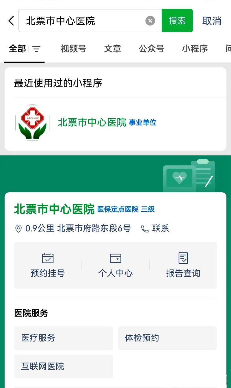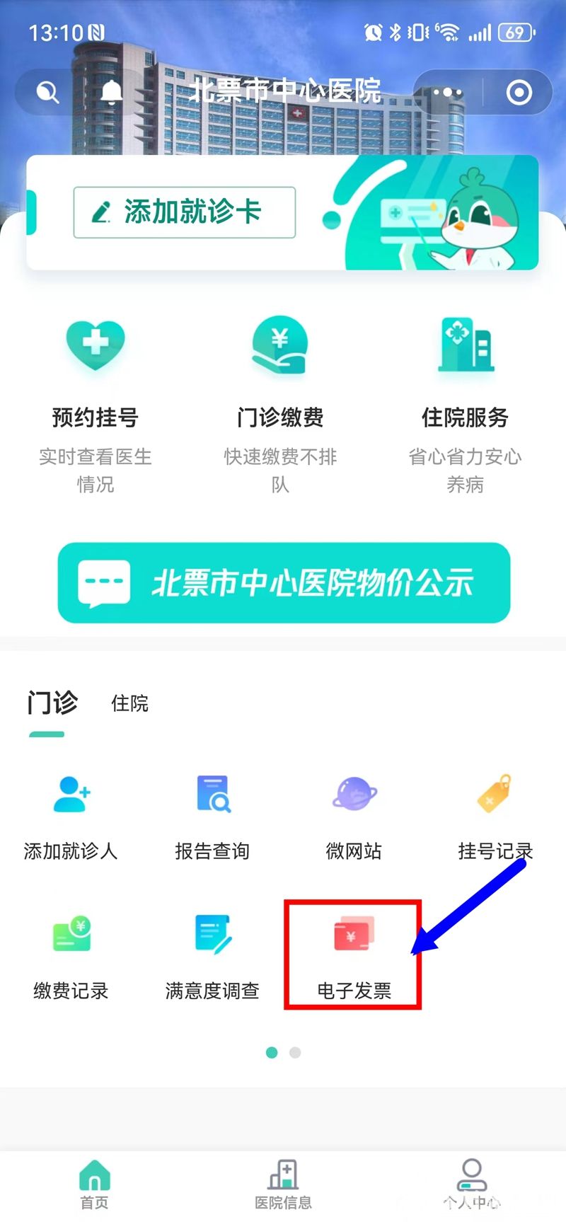 電子發(fā)票獲取方法二:1.微信搜索“北票市中心醫(yī)院”公眾號