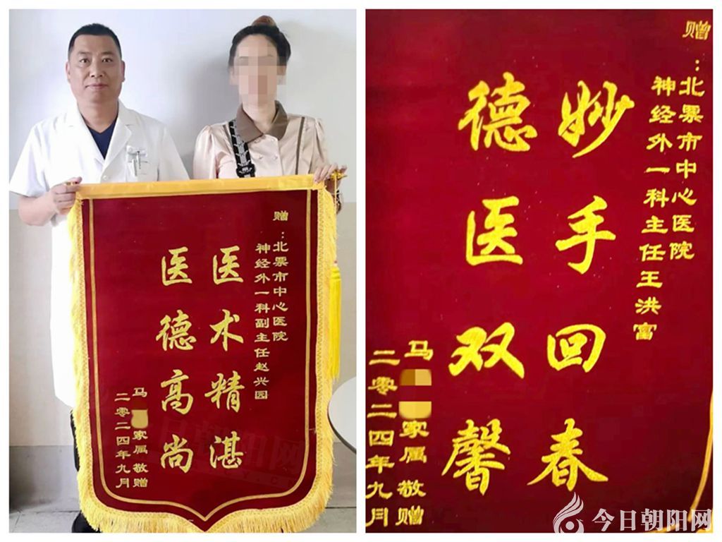 在神經(jīng)外一科,一名腦出血患者家屬贈(zèng)送的寫(xiě)有“妙手回春 德藝雙馨”“醫(yī)術(shù)精湛 醫(yī)德高尚”字樣的兩面錦旗格外顯眼。經(jīng)了解,科主任王洪富、副主任趙興園根據(jù)患者病情,有針對(duì)性地制定個(gè)性化治療方案,提出有效治療措施。通過(guò)神經(jīng)外一科全體醫(yī)護(hù)人員的共同努力,患者康復(fù)出院。