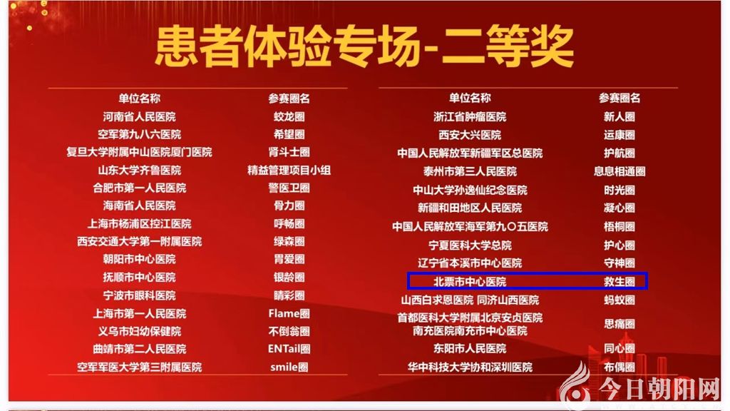本次大會由清華大學(xué)醫(yī)院管理研究院主辦,浙江省醫(yī)院協(xié)會承辦。來自全國各地的1700多支團(tuán)隊(duì),4000多人參與比賽。決賽入圍項(xiàng)目共1740項(xiàng),涵蓋課題研究型、三級醫(yī)療醫(yī)技、三級醫(yī)院護(hù)理等14個專場。經(jīng)過激烈角逐,北票市中心醫(yī)院選派的三個圈組在眾多參賽隊(duì)伍中脫穎而出。其中,急診“救生圈”在三級醫(yī)院“患者體驗(yàn)與安全專場”表現(xiàn)出色,榮獲二等獎;神經(jīng)外一科“神翼圈”與內(nèi)鏡室“護(hù)鏡圈”在三級醫(yī)院“醫(yī)療醫(yī)技專場”榮獲優(yōu)秀獎。