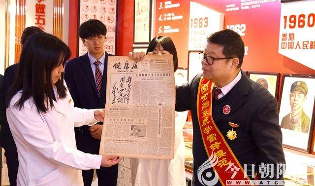 王建國(guó)多年來(lái)收集與雷鋒相關(guān)的文化藏品超萬(wàn)件,并矢志不渝地宣傳、學(xué)習(xí)、踐行雷鋒精神。參觀過(guò)程中,王建國(guó)更是拿出了珍藏的1963年3月5日《健康報(bào)》刊登的毛澤東題寫的“向雷鋒同志學(xué)習(xí)”手跡,這也是他首次對(duì)外展示此份報(bào)紙。