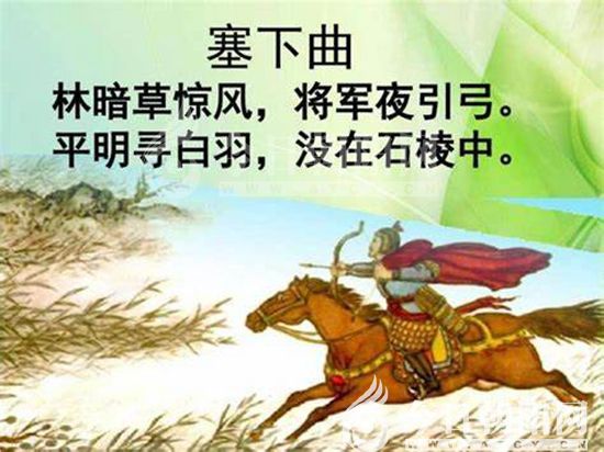據(jù)《史記》記載,李廣的事跡,其一是“擊匈奴”, 他平生身經(jīng)大小七十幾次戰(zhàn)斗。由于他英勇善戰(zhàn),成為匈奴貴族心目中可怕的勁敵。匈奴人稱他“飛將軍”。李廣做了右北平太守,匈奴人害怕飛將軍,不敢進(jìn)犯。其二是“善騎射”“格猛獸”。并因此得到漢文帝的賞識。武帝時鎮(zhèn)守右北平,匈奴兵多年不敢進(jìn)犯,可是常有老虎出來傷害人。李廣只要聽說哪兒有老虎,總親自去射殺。老虎碰見他,沒有不被射死的。有一次,天色朦朧,李廣瞧見前面山腳下草叢里蹲著一只斑斕猛虎。他連忙拿起弓箭,使盡全力射了過去。手下的兵士見他射中老虎,拿著刀槍跑上去捉虎。走近一瞧,全楞了,原來中箭的不是老虎,竟是一塊大石頭,而且這支箭陷得很深,幾個人去拔也拔不出來。