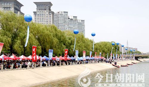 多臺救援保障車輛停在適當(dāng)?shù)奈恢?,有許多相關(guān)工作人員在細心檢查、整理各種救援設(shè)備,確保萬無一失。陸續(xù)搭起的各贊助單位宣介的帳篷中,身著代表不同企業(yè)特點的服裝,讓一大早就趕來的觀眾提前領(lǐng)略他們不一樣的風(fēng)采。陸續(xù)前來的觀眾,他們有的手拿彩旗、氣球在岸邊的甬道兩旁,三三兩兩,三五成群地說笑著,悠閑地等待著比賽開始。雖然,此時離比賽開始還有三四個小時的時間,足見我們朝陽人的熱情。