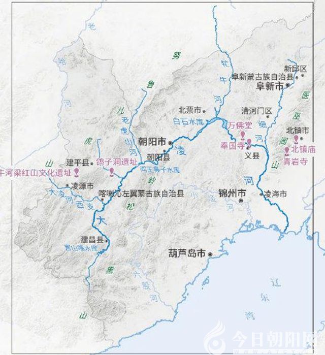 大凌河古稱白狼水。最早見于《漢書•地理志》。到酈道元《水經(jīng)注》時(shí),大凌河主要支流多已有名,大凌河西支稱為渝水、方城川水,滲津河稱為石城川水,第二牤牛河(又稱葉柏壽河)稱高平川水,老虎山河稱自魯水,牤牛河稱濫真水。到了遼代,白狼水改稱靈河,金代又改稱凌河。張萬連先生認(rèn)為,靈改為凌,蓋大凌河為塞外寒河,凌有凌凍之意。元代以后,蒙古族人集居朝陽(yáng),因此,朝陽(yáng)山川都被冠以蒙古語(yǔ)稱謂,大凌河因此又稱敖木倫(敖木楞)河。