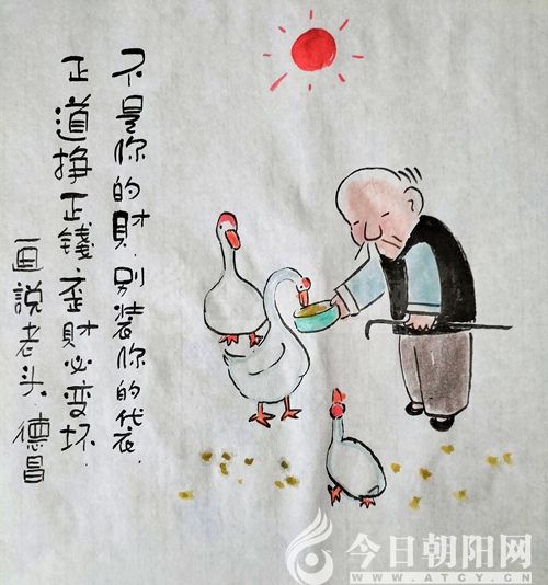 范德昌,今日朝陽網(wǎng)文化信使,1955年生于山東濰坊。山東省美協(xié)會員,省漫協(xié)理事兼副秘書長。被《漫畫人生》聘為指導(dǎo)老師,《女人觀天下》等多家報刊專欄簽約畫家。事跡和畫作收入《中國人才薈萃》《二十一世紀(jì)人才庫》等八本辭書和傳記。40年來,在全國260余家報刊和網(wǎng)站發(fā)表作品6000余件,160多次獲獎,其中《一帆風(fēng)順》獲“施樂杯”全國漫賽一等獎。多幅作品被韓國、新加坡等國家的書畫愛好者收藏。水墨小品自成一體,被多家新聞單位稱為扎根基層的民俗畫家,被評為“山東省百名讀書人物”和提名“百名文化名人”。退休后,師從著名民俗畫家邢振齡老師學(xué)習(xí)民俗水墨小品。出版畫集13部。