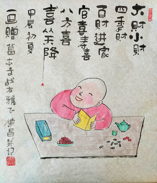 范德昌,今日朝陽網(wǎng)文化信使,1955年生于山東濰坊。山東省美協(xié)會員,省漫協(xié)理事兼副秘書長。被《漫畫人生》聘為指導(dǎo)老師,《女人觀天下》等多家報刊專欄簽約畫家。事跡和畫作收入《中國人才薈萃》《二十一世紀人才庫》等八本辭書和傳記。40年來,在全國260余家報刊和網(wǎng)站發(fā)表作品6000余件,160多次獲獎,其中《一帆風(fēng)順》獲“施樂杯”全國漫賽一等獎。多幅作品被韓國、新加坡等國家的書畫愛好者收藏。水墨小品自成一體,被多家新聞單位稱為扎根基層的民俗畫家,被評為“山東省百名讀書人物”和提名“百名文化名人”。退休后,師從著名民俗畫家邢振齡老師學(xué)習(xí)民俗水墨小品。出版畫集13部。