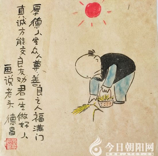 范德昌,今日朝陽網(wǎng)文化信使,1955年生于山東濰坊。山東省美協(xié)會員,省漫協(xié)理事兼副秘書長。被《漫畫人生》聘為指導(dǎo)老師,《女人觀天下》等多家報刊專欄簽約畫家。事跡和畫作收入《中國人才薈萃》《二十一世紀(jì)人才庫》等八本辭書和傳記。40年來,在全國260余家報刊和網(wǎng)站發(fā)表作品6000余件,160多次獲獎,其中《一帆風(fēng)順》獲“施樂杯”全國漫賽一等獎。多幅作品被韓國、新加坡等國家的書畫愛好者收藏。水墨小品自成一體,被多家新聞單位稱為扎根基層的民俗畫家,被評為“山東省百名讀書人物”和提名“百名文化名人”。退休后,師從著名民俗畫家邢振齡老師學(xué)習(xí)民俗水墨小品。出版畫集13部。